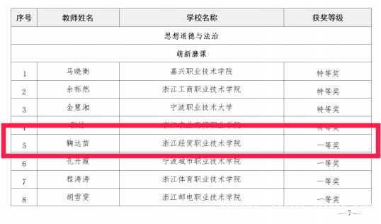 近日,2026年浙江省高职高专院校思想政治理论课“萌新磨课、骨干练兵”教学展示活动结果揭晓。经初选推荐和线上专家评审,我校马克思主义学院教师鞠达苗和王愉静分别荣获《思想道德与法治》和《毛泽东思想和中国特色社会主义理论体系概论》省赛一等奖,刘佳豪和张蕾荣获《习近平新时代中国特色社会主义思想概论》省赛二等奖。